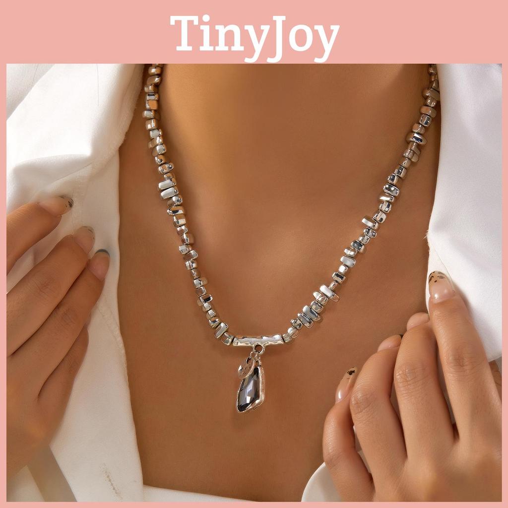 Dieses geometrische Legierungs-Choker- und Armband-Set zeichnet sich durch ein schlankes Design mit einem Strassanhänger aus, gefertigt aus einer langlebigen Legierung mit einer polierten galvanisierten Oberfläche. unterstützt bequemes Tragen. Dieses Set ist ideal für moderne Accessoires und ergänzt lässige oder schicke Outfits.. Mit einem weichen Tuch abwischen, um den Glanz zu erhalten.