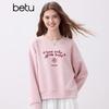 Betu Women's 2025 Autumn Embroidered Drop Shoulder Casual Long Sleeve Sweatshirt
