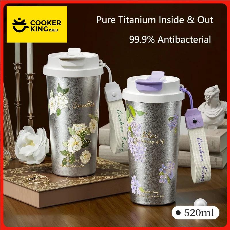 COOKER KING 520ML Pure Titanium Insulated Cup Flower Pattern Portable Thermos Cup Dual-Drink Coffee Mug Car Water Cup for Gift
