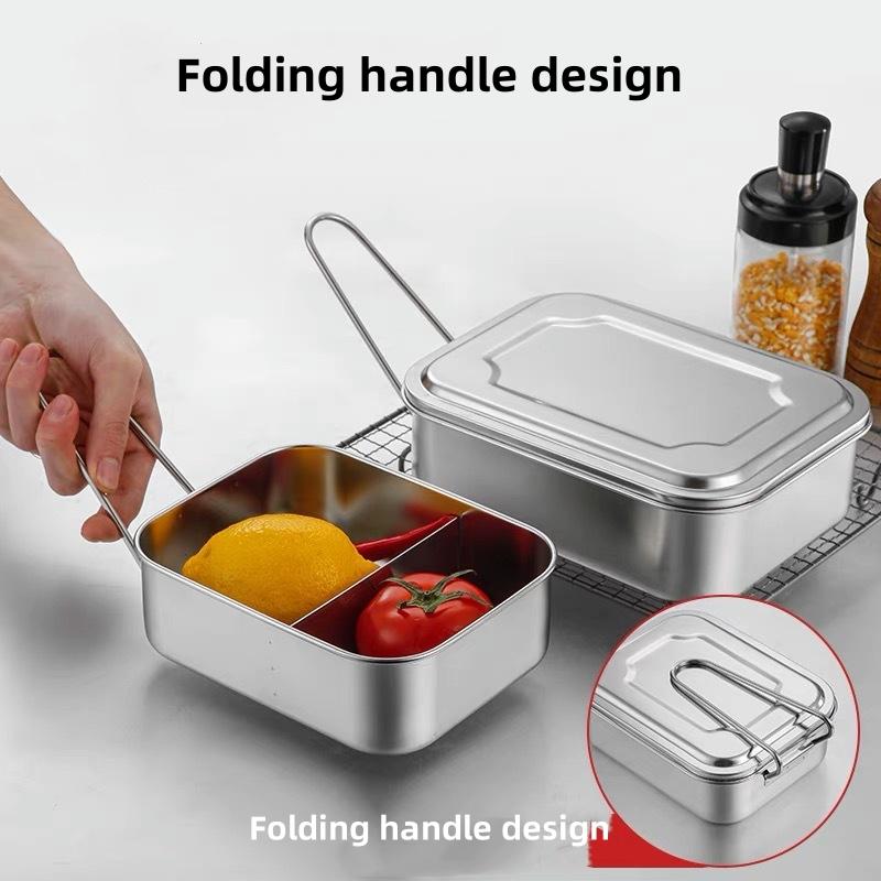 304 Edelstahl Bento Lunchbox mit Griff für Studenten Große Kapazität Quadratisch Versiegeltes Fach Lebensmittelaufbewahrungsbehälter