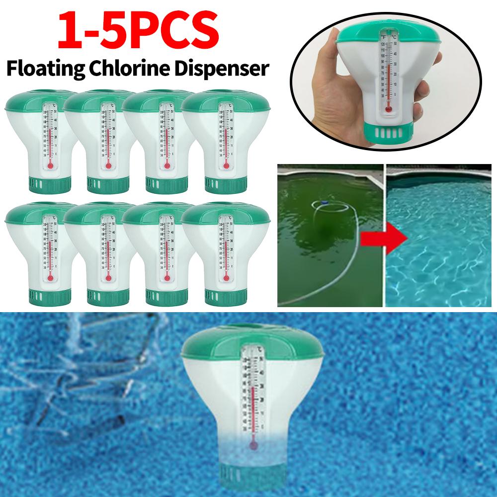 Floating Chlorine Dispenser Water Disinfection Purifier with Thermometer Adjustable Chemical Delivery Tablets Cleaner for Pool