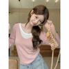 Fake two-piece contrasting knitted sweater women's spring splicing long-sleeved top casual age-reducing bottoming shirt
