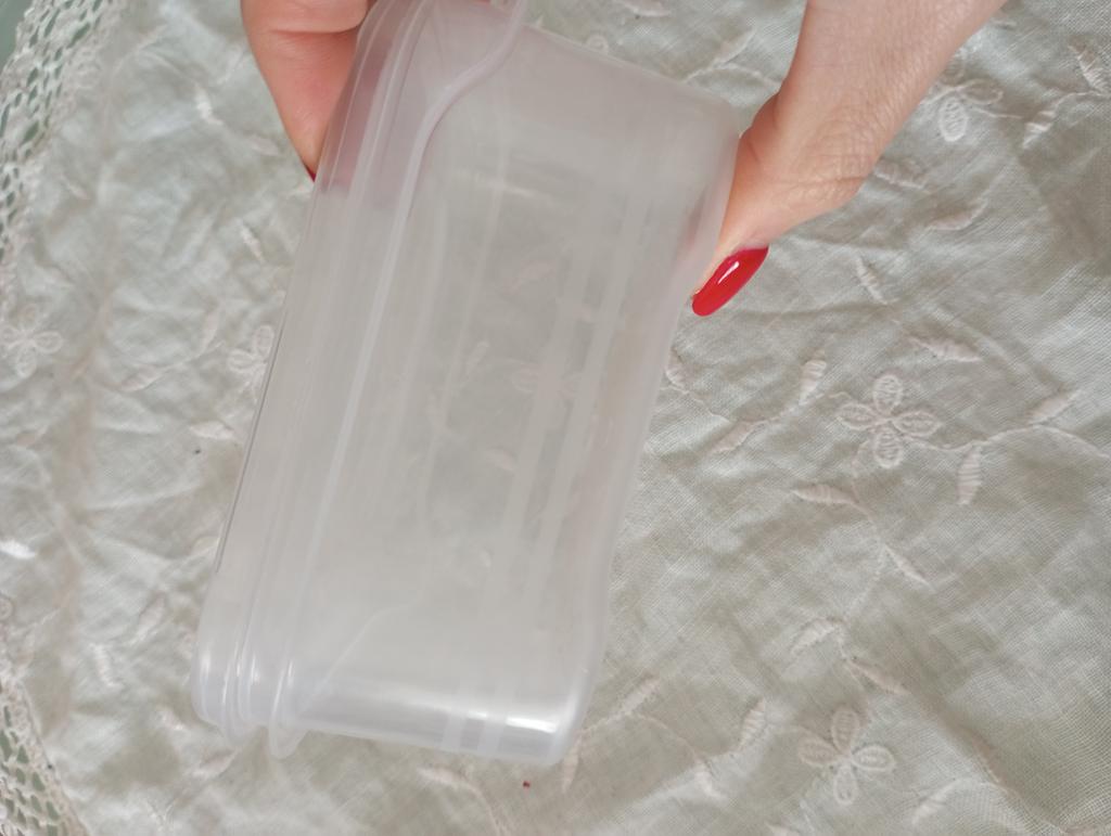 Kunststoffbehälter Hergestellt aus lebensmittelechtem Kunststoff ohne Fremdgeruch. Fassungsvermögen 650 ml. Der Deckel schließt hermetisch Geeignet zur Aufbewahrung von Lebensmitteln im Kühlschrank Ich empfehle zu kaufen.
