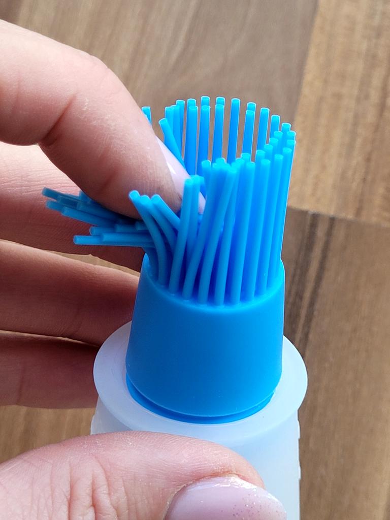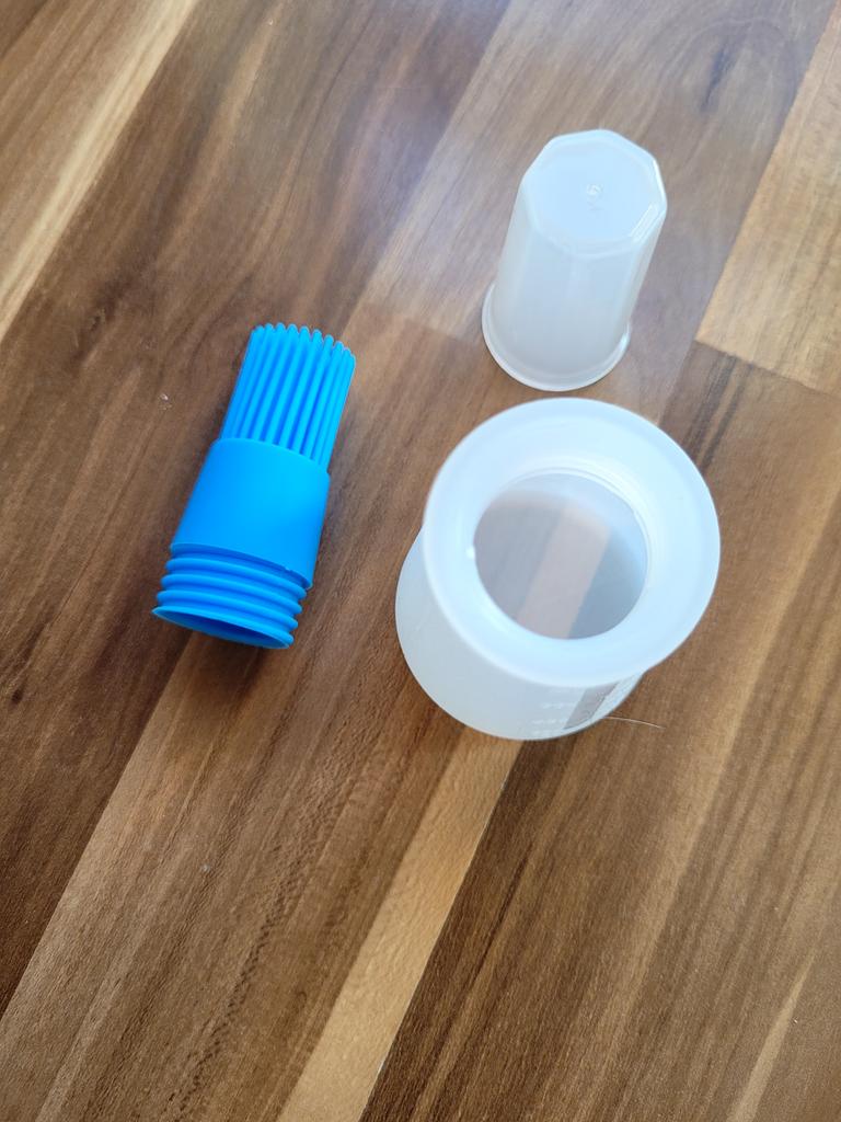 * Silikonflasche für Zum Bestreichen von Marinaden * ⭐⭐⭐⭐⭐ 💥𝗟𝗶𝗲𝗳𝗲𝗿𝘇𝗲𝗶𝘁 Gut 2 Wochen bis nach Deutschland 💥𝗟𝗶𝗲𝗳𝗲𝗿𝘂𝗺𝗳𝗮𝗻𝗴 Im Lieferumfang enthalten ist 1 Silikonflasche mit blauen Silikonbürsten und Deckel. Verfügbar ist es nur in einer Ausführung. Verpackt war das Ganze in einer einfachen Folie . 💥𝗤𝘂𝗮𝗹𝗶𝘁ä𝘁 Ich bin sehr begeistert von der Idee . 👌 Es handelt sich hierbei um eine Silikonflasche, die sehr weich ist und die man befüllen kann mit sämtlichen Flüssigkeiten. Oben befindet sich eine Art Silikonpinsel, mit dem man das Fleisch oder das Gemüse mit der entsprechenden Marinade bestreichen kann. Die Silikonpinsel können mit einer zusätzlichen Kappe vor Staub geschützt werden, Welche auch im Lieferumfang enthalten ist. Die ANWENDUNG ist sehr leicht: Man befüllt die Flasche mit der entsprechenden Marinade oder Dressing, setzt die Silikonbürste wieder oben auf (drauf stecken oder drehen) und fängt an mit dem Pinsel über das Lebensmittel zu streichen. Dabei läuft die Flüssigkeit aus der Silikonflasche heraus und man kann alles wunderbar mit dem kleinen Pinseln auf dem Lebensmittel verteilen. Wenn man die Flasche etwas zusammendrücken, läuft die Flüssigkeit stärker hinaus. Dadurch ist eine individuelle Dosierung sehr einfach möglich. Ich finde die Idee dahinter super genial ! Auch die Reinigung dürfte kein Problem sein mit einer kleinen Bürste und etwas Spüli. ❌Nachteil: Leider kann man die Skalierung auf der Silikonflasche nicht so gut erkennen. Zur Materialzusammensetzung : Silikon 💥𝗙𝗮𝘇𝗶𝘁 Super praktische Silikonflasche mit Aufsteckbürste, , um Marinaden oder Dressing auf Lebensmitteln zu verstreichen. Ich kann diesen Artikel vorbehaltlos weiterempfehlen ⭐⭐⭐⭐⭐ Falls euch meine Bewertung gefallen und bei einer Kaufentscheidung weitergeholfen hat, würde ich mich freuen wenn wir Ihr mir hier folgt, denn es werden noch viele weitere nützliche Bewertungen folgen in naher Zukunft. 😉