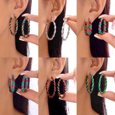 Minimalist Alloy Festive Earrings With Twisted Design And Christmas Elements For Women