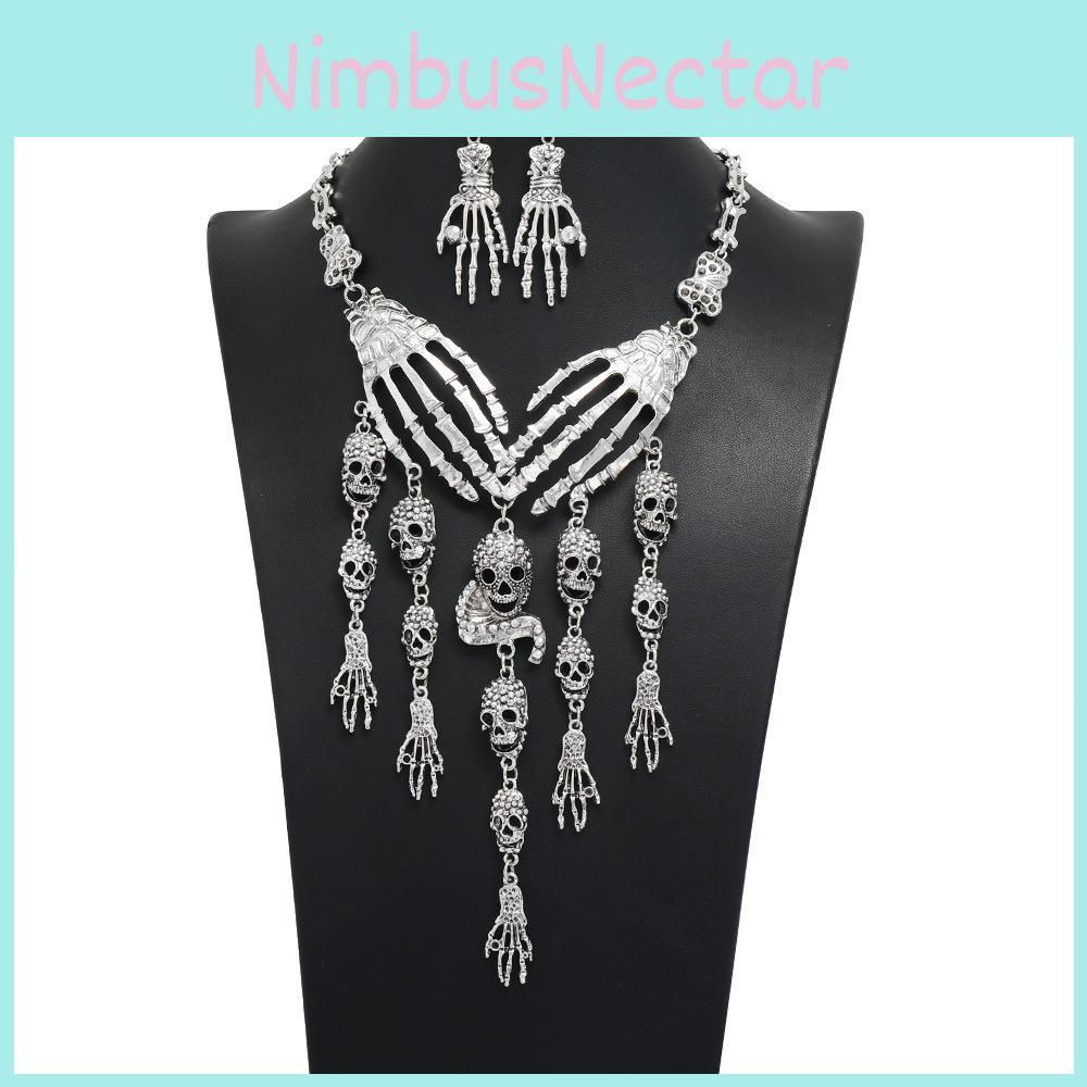 Modisches Handknochen Damen Halsketten- und Ohrring-Set Mit Skelett-Quasten-Design Für Gothic-Cosplay-Accessoires