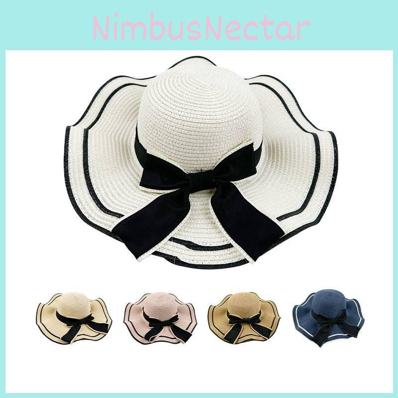 Bow-embellished Straw Sun Hat With Wide Brim For Women's Outdoor Activities And Travel