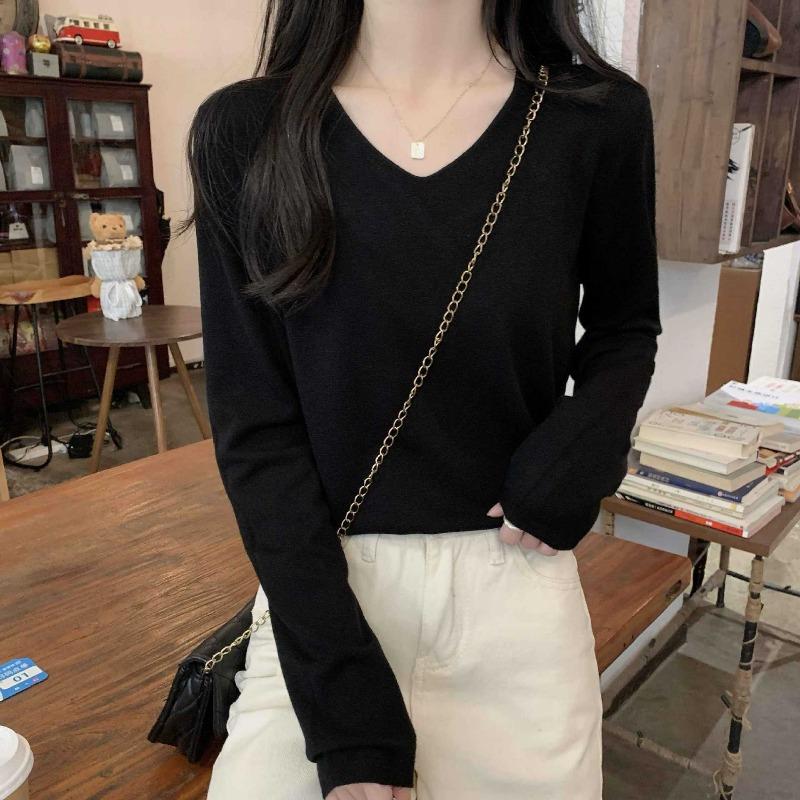Soft waxy neck simple knitted backing sweater spring casual long-sleeved top black backing shirt