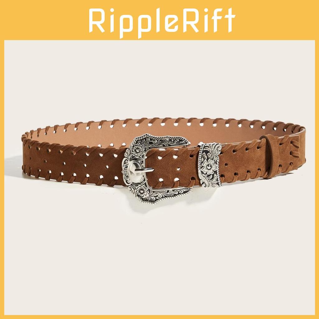 Fashionable Carved Metal Buckle Women Casual Suede Waist Belt For Daily Office And Leisure