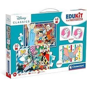 Clementoni - Edukit - Disney - Lernset 4 in 1 - 2 Puzzles, 1 Memo, 1 Spiel mit 6 Würfeln - Hergestellt in Italien - Ab 4 Jahren