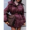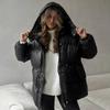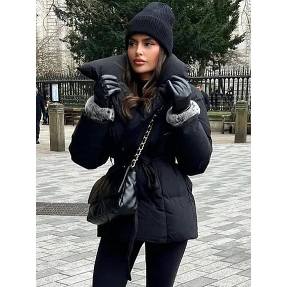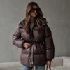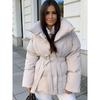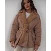 Unifarbener Schnür-Baumwollmantel Damenmode Revers Langarm Tasche Warm Locker Kurze Jacke Dame Winter Pendeln Straße Oberbekleidung