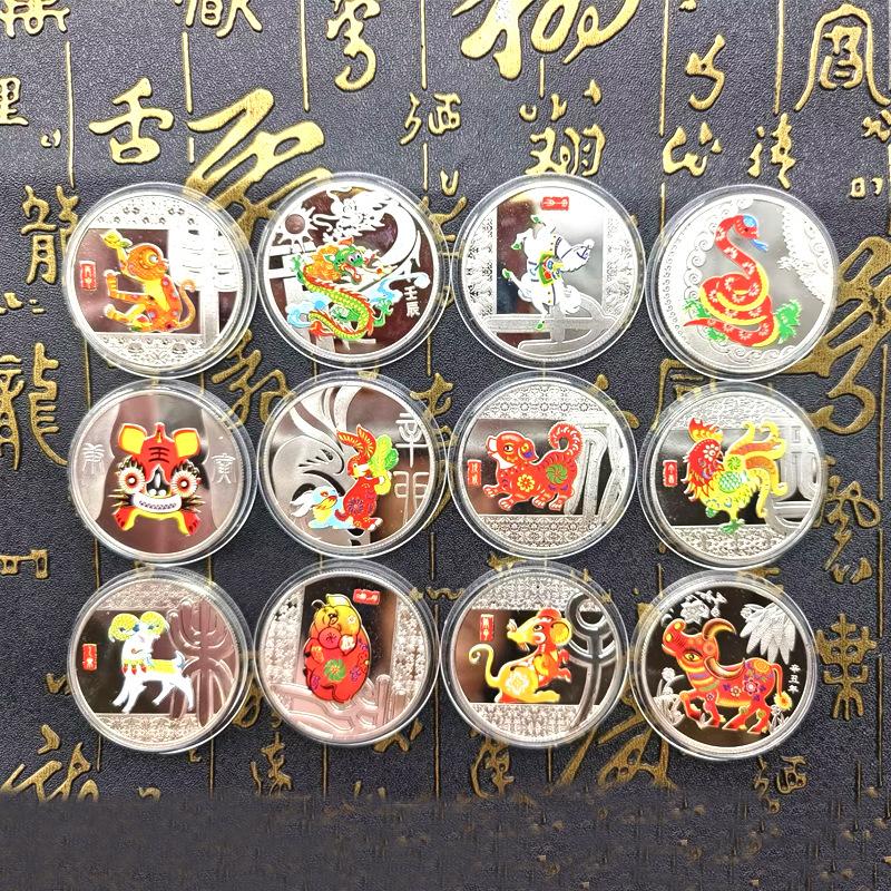 12 Tierkreis-Gedenkmedaillen, Metallhandwerk, Bunt, Tierkreismünzen, Souvenirs, Veranstaltungen, Geschenke, Handliche Geschenke, Weihnachtsgeschenk, Strumpffüller