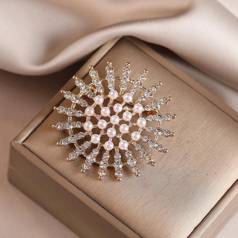 Sonnenblumenbrosche für Damen, Ein leichter Luxus- und High-End-Look. Perlen- und Diamantbrosche für Herbst- und Wintermantel