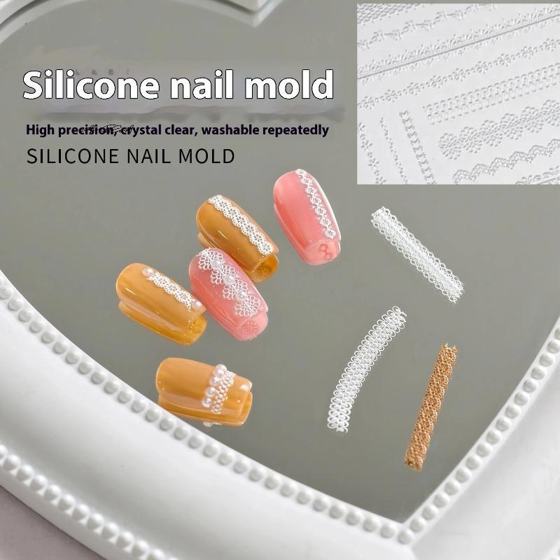 French Lace Silicone Nail Art Mold DIY Beauty Simple Line Reusable Handmade Tool for Nail Decoration Stamp