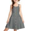 Ein lässiges und modisches einfarbiges Westenkleid mit Schnallen und ohne Manschetten für Kinder