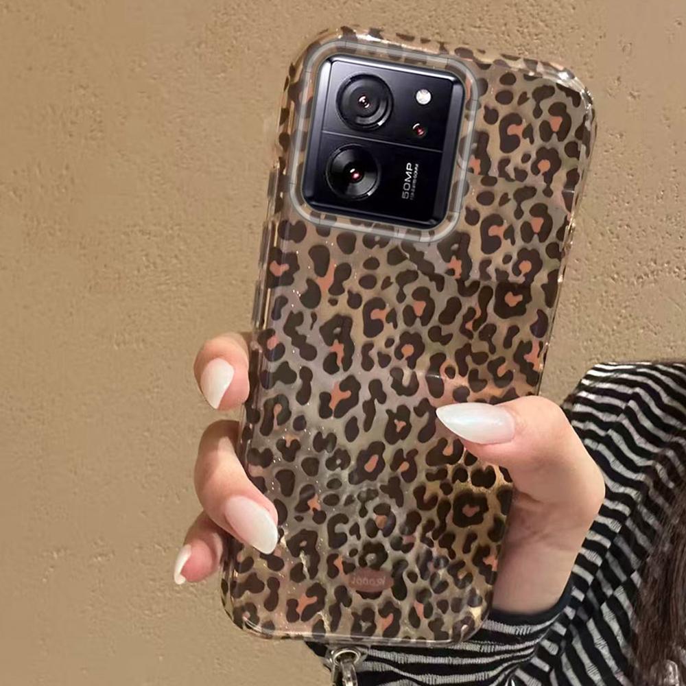 Koreanische Bernsteingold-Leopardenmuster-Handyhülle für Xiaomi 13T 14T 11 Lite NE Poco X5 M6 Pro X6 X7 X3 Pro NFC C65 C61 M5S Damen Hülle