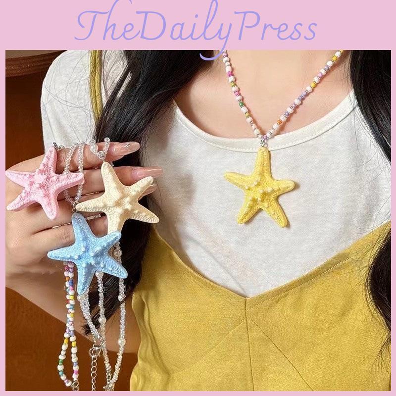 Ozeaninspirierte Harz Seestern Halskette für Damen Lange Kette Sommerschmuck