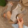 Damen Retro Römische Peep-Toe Keilabsatz Plateau Pantoletten