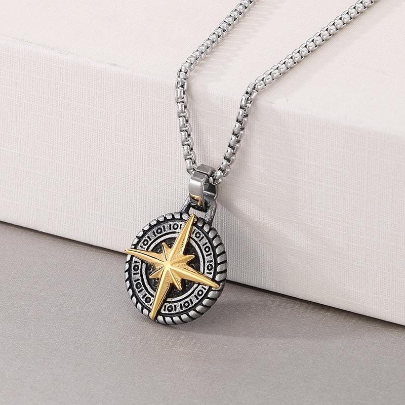 2025 Schmuck Hexagramm Stern Halskette Herrenmode Einfacher Runder Kompass Anhänger Schmuck
