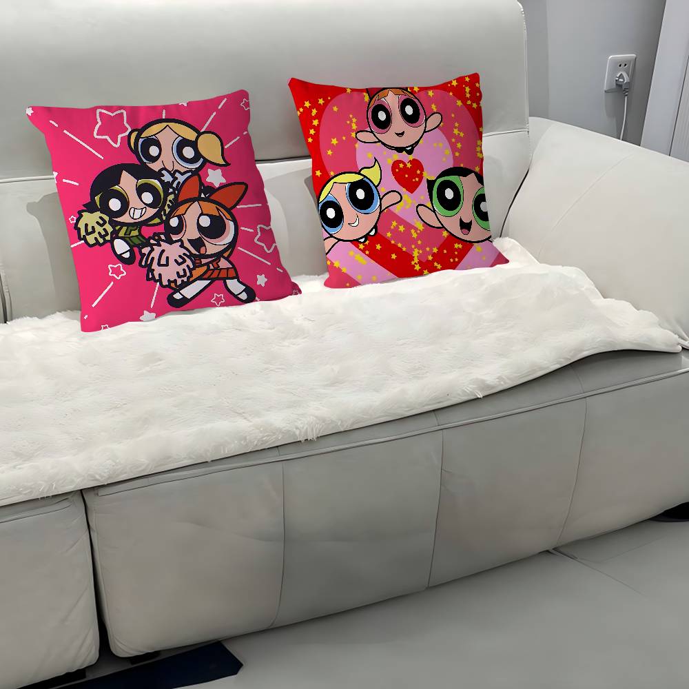 PowerpuffS Anime Girls Pillow Case Removable Washable Cushion Cover – All-Season Soft Linen