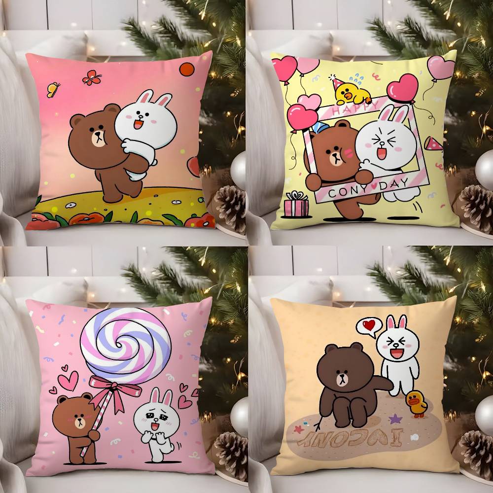 B-Braunbär und Cony Kissenbezug Sofa Wohnzimmer Schlafzimmer Doppelseitiger Druck Quadratisches Kissen Nickerchen Kissenbezug