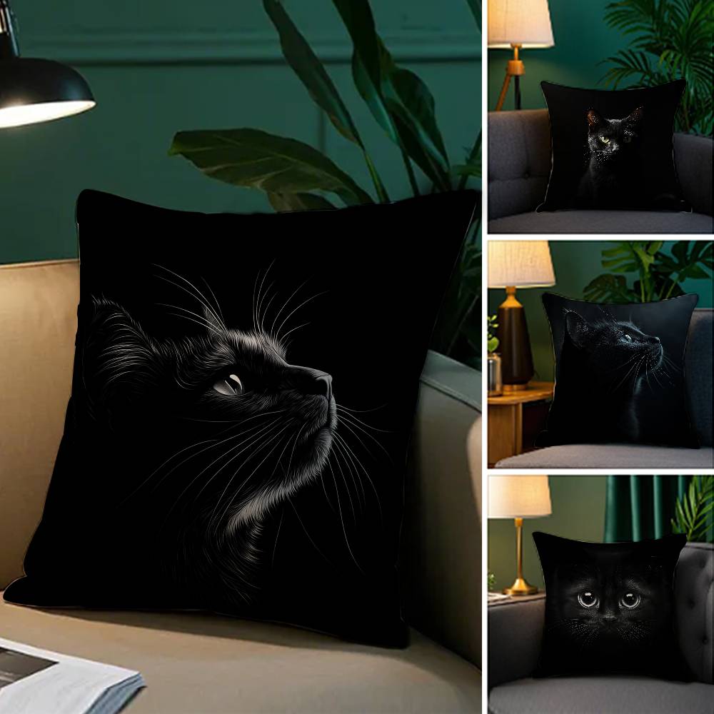 Schwarze Katze Niedlicher Kissenbezug Plüschstoff Weicher Kissenbezug Doppelseitiger Druck Sofakissenbezug Wurfkissen