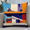Farbblock Zug Minimalistischer Stil Kissenbezug Kurzplüsch Beidseitiger Druck Quadratische Kissenbezüge Sofa Heim Kissen Dekor
