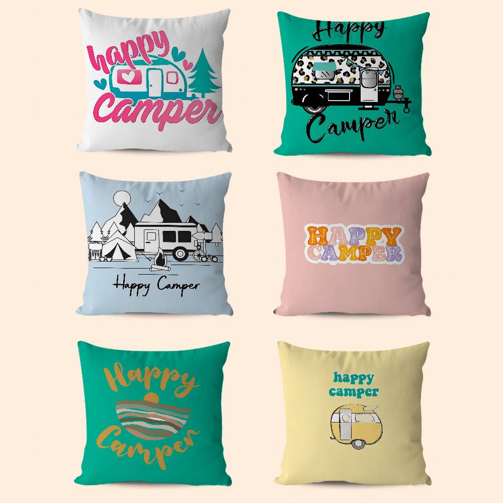 Happy Camper Kissenbezug Cartoon Geschenk Kissenbezug Schlafzimmer Zuhause Sofa Stuhl Sitz Dekor Kissenbezug