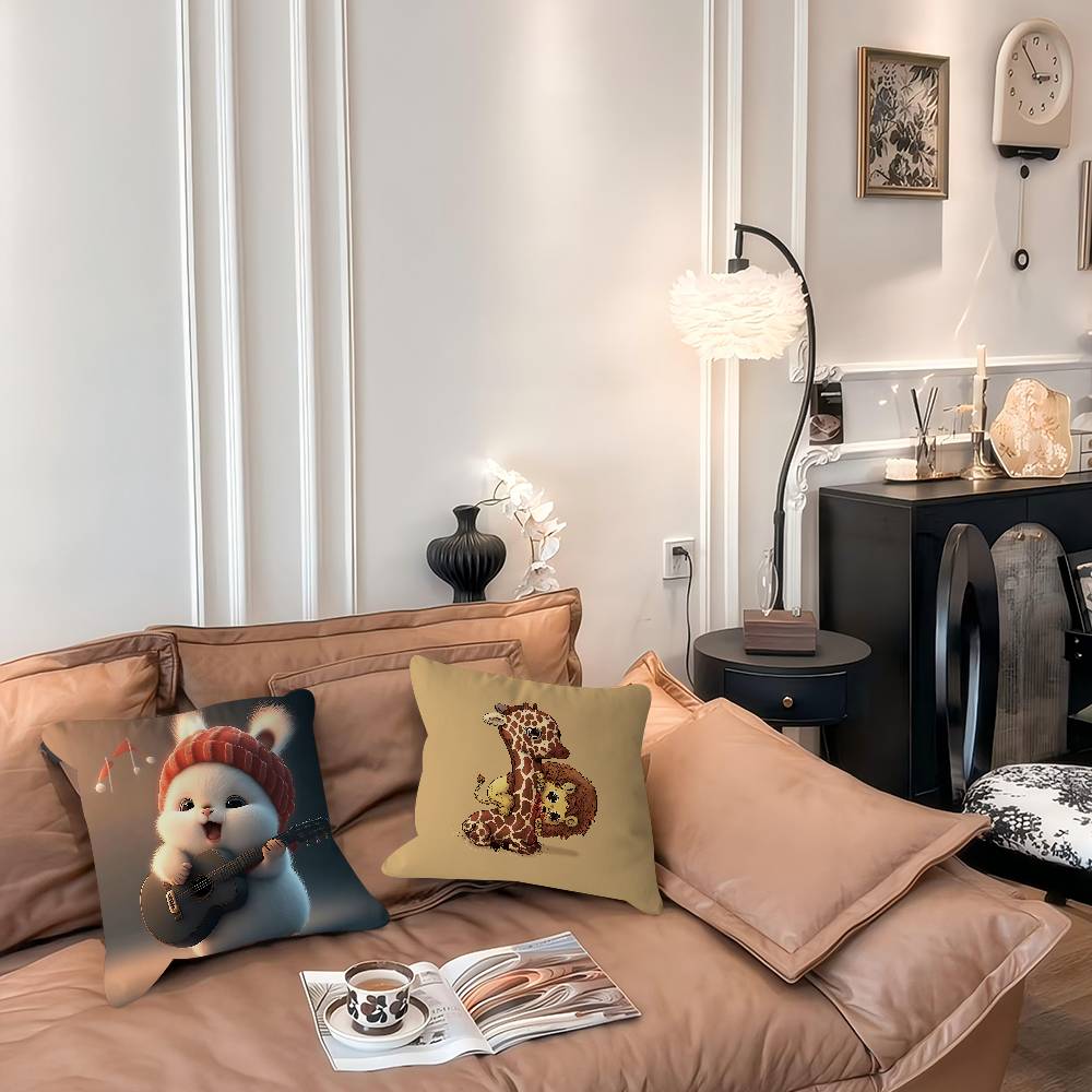 Cartoon Niedliche Tiere Kissenbezug Abnehmbarer Waschbarer Kissenbezug – Ganzjährig Weiches Leinen