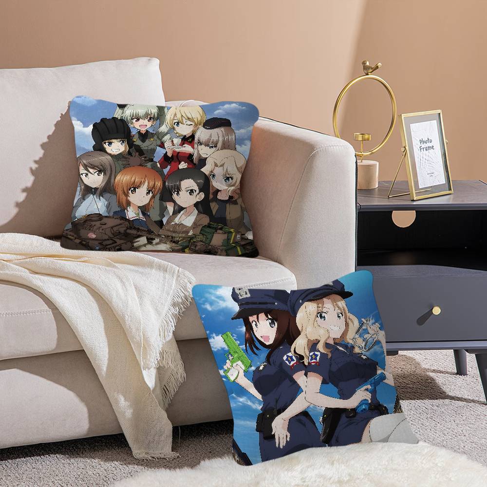 Girls Und Panzer Das Finale Bezug mit kurzem Plüschdruck für Wohnzimmer Sofa Dekoration Kissenbezug Kissenbezüge