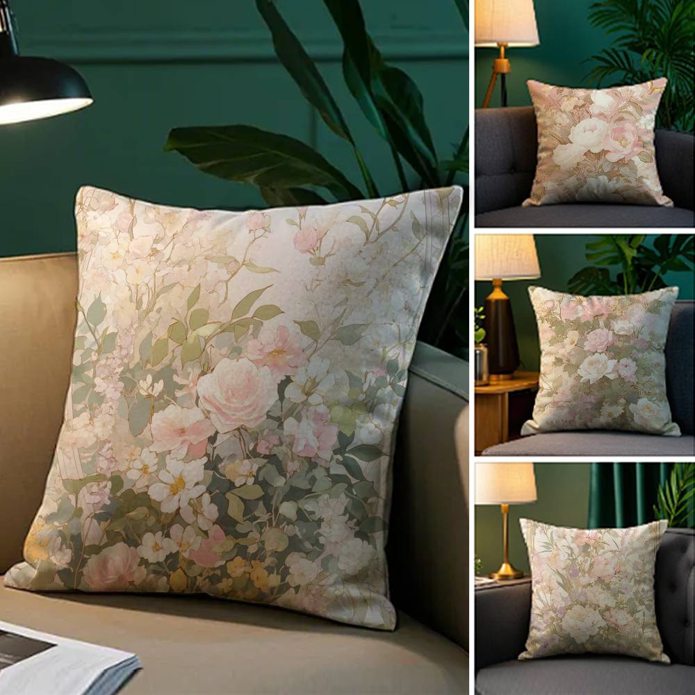 Ästhetischer R-Roco-coS-Stil Floraler Kissenbezug Anti-Hausstaubmilben-Kissenbezug Verdeckter Reißverschluss seidig kurzer Plüsch Sofakissenbezug