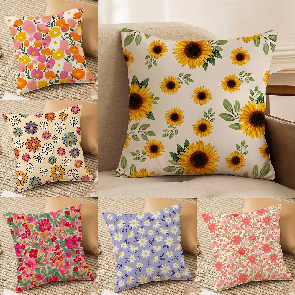 Kissenbezug mit Allover-Blumenmuster, seidig-elegant, komfortabel, Sofa-Bett, unsichtbarer Reißverschluss, Strandkissenbezug