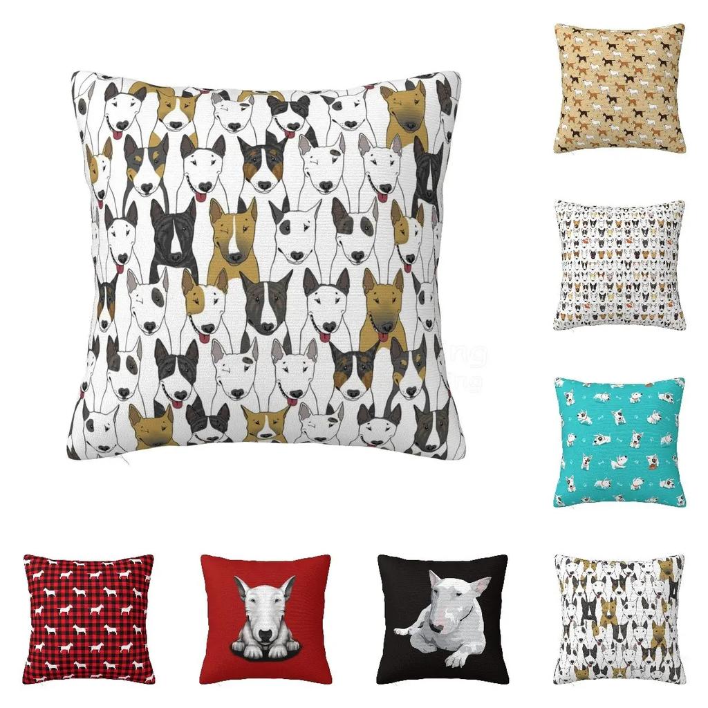 English Bull Terrier Hund Liebe Kissenbezug Kissenhülle für Sofa Lustige Tier-Wurfdecke Kissenbezug Wohnzimmer Schlafzimmer Dekoration