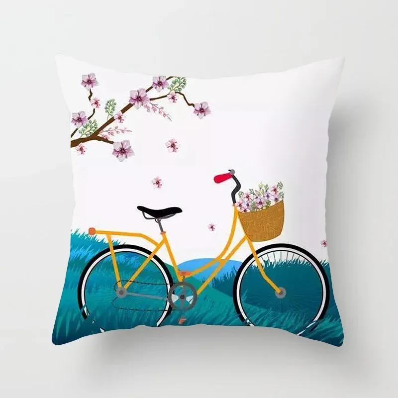 Kissenbezug für Wohnzimmer und Schlafzimmer, Polyester-Kissenbezug mit Blumen- und Fahrradmuster, Kissenbezug, Funda de Almohada