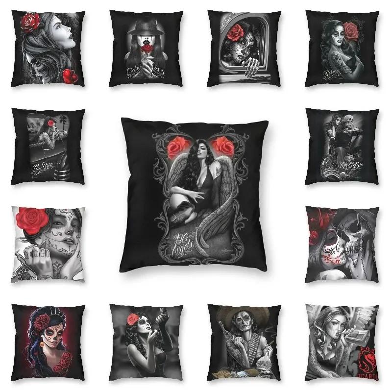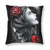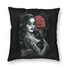 Halloween Zuckerschädel Mädchen Kissenbezug Sofa Heim Dekoration Mexikanisch Chicano Stil Quadratischer Wurfkissenbezug 40x40cm