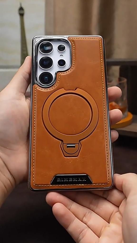 360° drehbare Halterung Lederhülle, Für Samsung Galaxy S24 S23 S25 Ultra S25Edge Kabelloses Laden Handy Schutz Rückseite