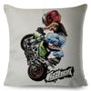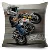 Kissenbezug mit Cartoon-Sportmotorradmotiv, farbenfroher, extremer Motorrad-Kissenbezug für Sofa, Zuhause, Auto, 45 x 45 cm