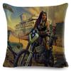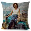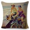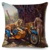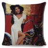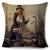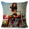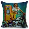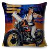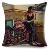 Vintage Sexy Motorrad Lady Kissenbezug Dekor Ölgemälde Cartoon Frauen Kissenbezug für Sofa Auto Polyester Kissenbezug 45x45