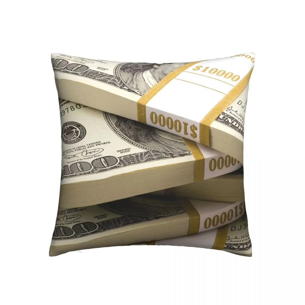 100 Dollar Banknoten Kissenbezug Bedruckter Polyester Kissenbezug Dekor Wurfkissenbezug Zuhause Quadratisch 40*40cm