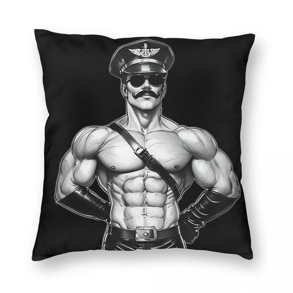 Tom Of Finland Daddy Gay Pride Quadratischer Kissenbezug Polyester Leinen Samt Kreativ Reißverschluss Dekor Bett Kissenbezug