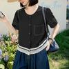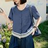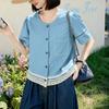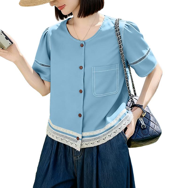 ZANZEA Damen Lässige Rundhals Sommer Kurzarm Spitze Patchwork Bluse