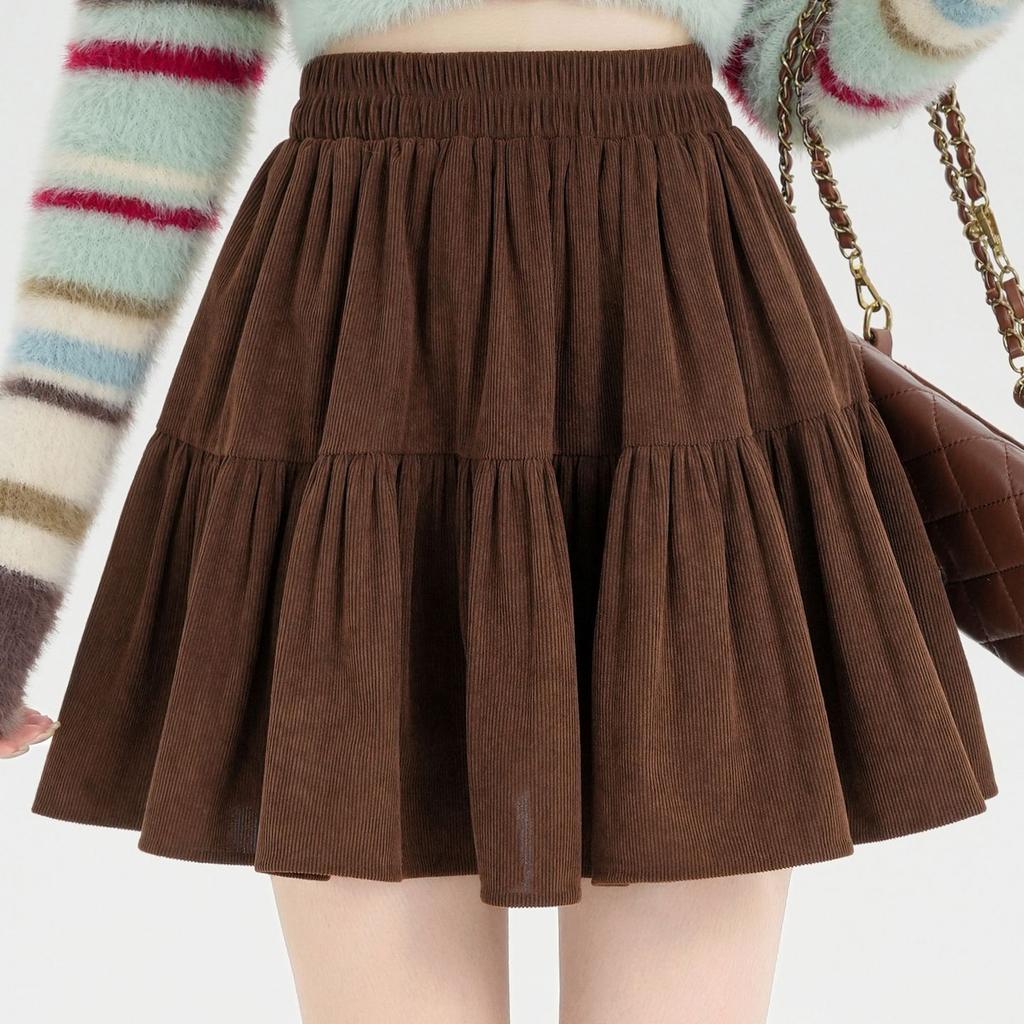 Women's Corduroy Umbrella Skirt High-Waist A-Line Skirt Autumn Short Mini Skirt