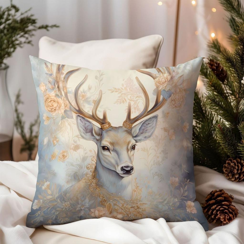 Eleganter, weihnachtlicher Kissenbezug mit Hirschmotiv und goldenen Akzenten