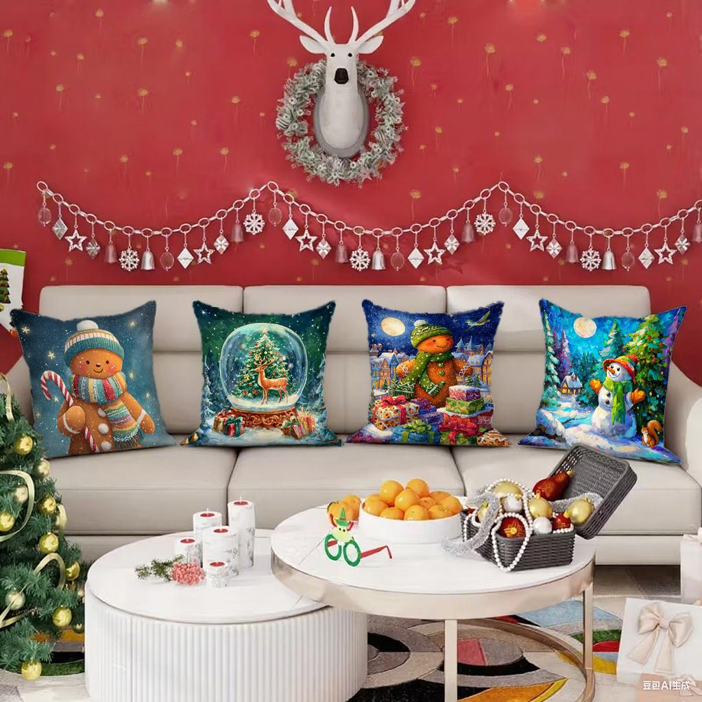 Weihnachtliche Kissenhülle mit LebkuchenmannGeeignet für Sofa Auto Schlafzimmer dekorativer Kissenbezug Kissenbezug