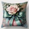 Pink Rose and Polka Dot Bow Pattern Home Decor Pillowcase Living Room Sofa Polyester Cushion Cover with Zipper