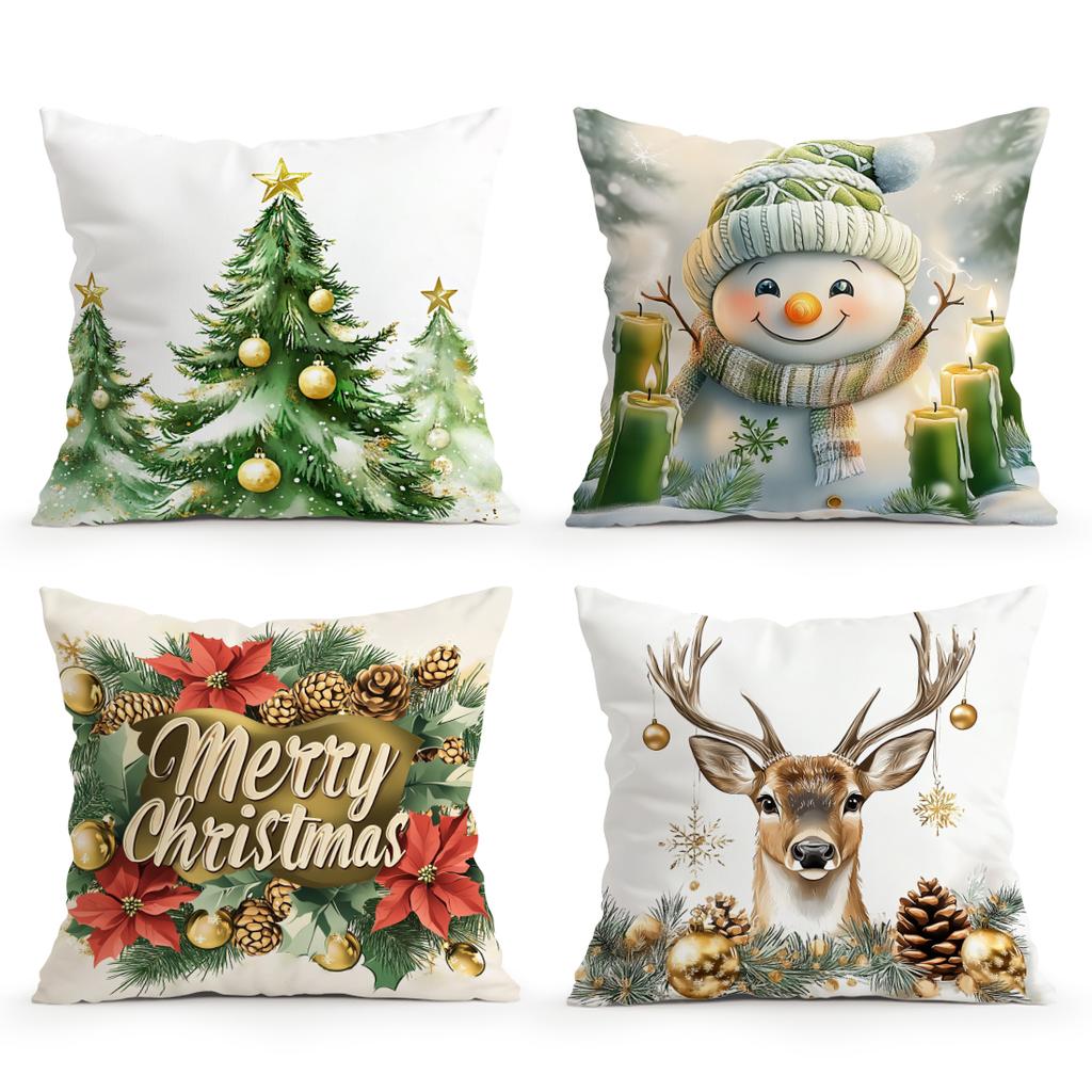 Watercolor Christmas Cushions Pillowcase Polyester Cushion Cover Throw Pillow Pillowcover Home Car Sofa Decor