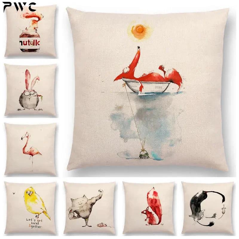 Lustige Cartoon Schurken Tiere Sofa Kissenbezug Eichhörnchen Hase Maus Flamingo Fuchs Hund Eule Vogel Tom und Jerry Kissenbezug