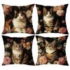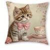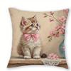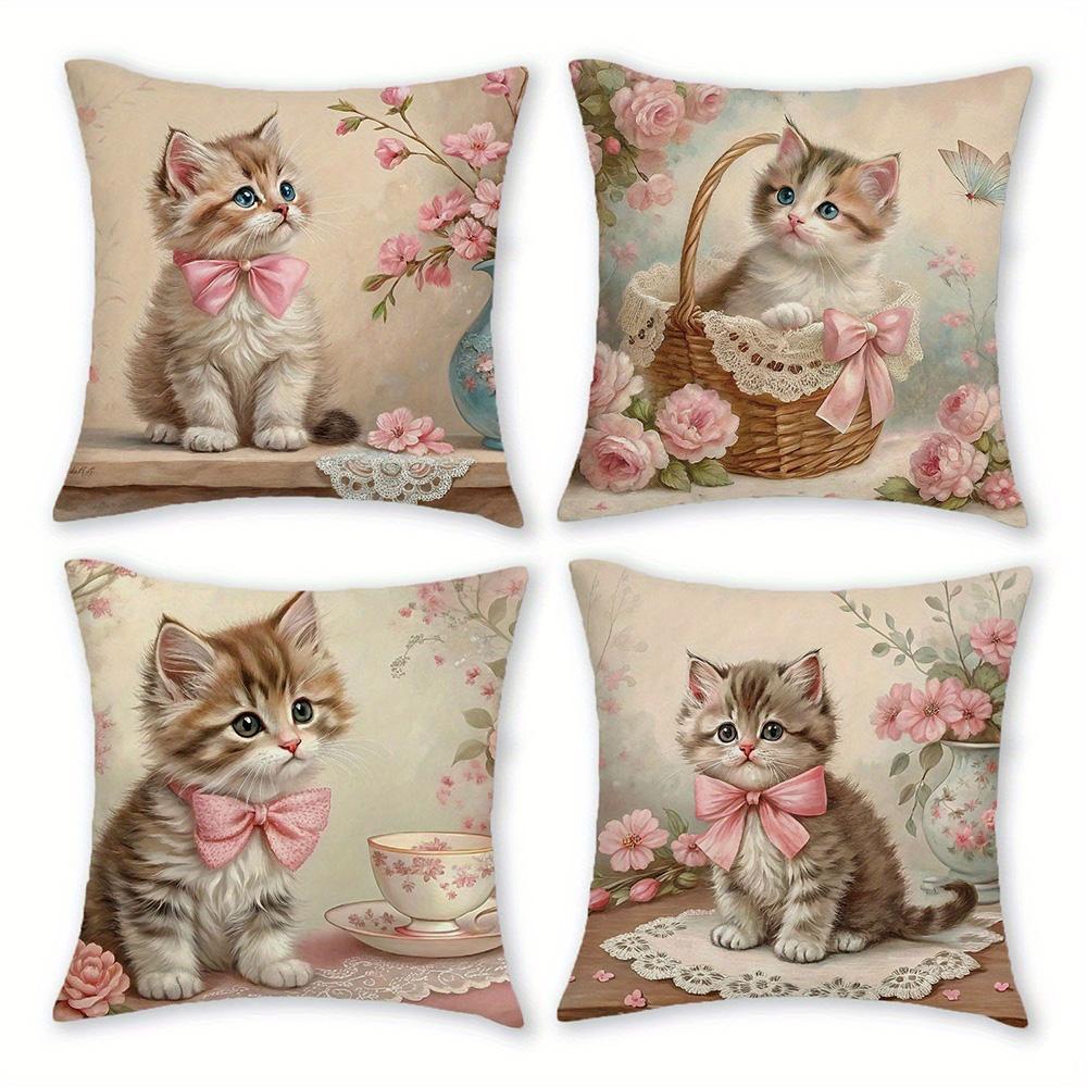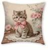 Entzückende Kätzchen-bedruckte Kissenbezüge mit rosa Schleifen und floralen Mustern Sofakissenbezug Heimzimmerdekoration 2D-Flachdruck