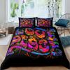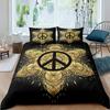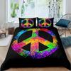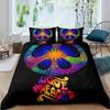Buntes Friedenssymbol Bettbezug-Set Queen-Size Boho Hippie Psychedelische Blumen Bettwäscheset Regenbogen Batik Deckenbezug-Set