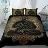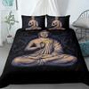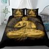 Mandala Buddha Bettbezug-Set, Böhmisches Bettwäsche-Set Goldener Schwarzer Lotusblumen-Druck Luxuriöser Mikrofaser-Polyester-Bettdeckenbezug